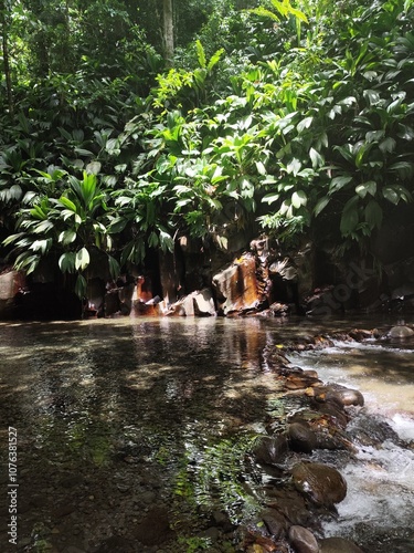 canyon of Riviere Moustique in petit Bourg, Basse terre, Guadeloupe. River in the rainforest of West indies nature