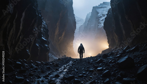 Canyon Roams in Foggy Winter: The Trailblazer's Trek Engulfed in Landslide