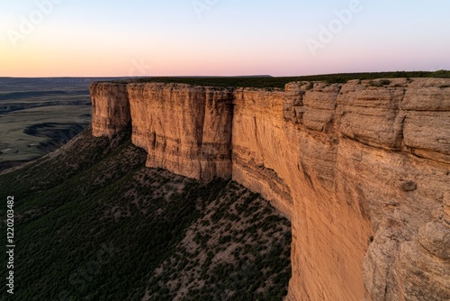 Canyon Sunrise: A panoramic view of a vast canyon in soft light.