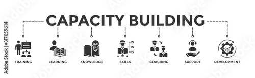 Capacity building banner web icon vector illustration concept with an icon of training, learning, knowledge, skills, coaching, support, and development