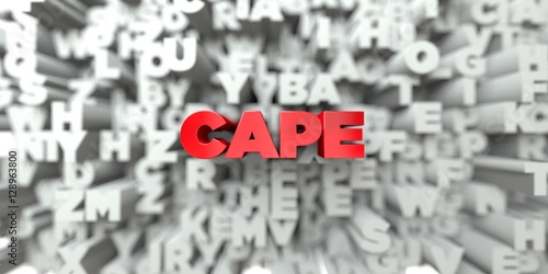 CAPE - Red text on typography background - 3D rendered royalty free stock image. This image can be used for an online website banner ad or a print postcard.