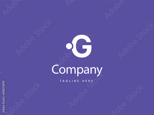Capital G letter logo design with Purplish Blue background, G type logo with dot, creative letter G logo design template