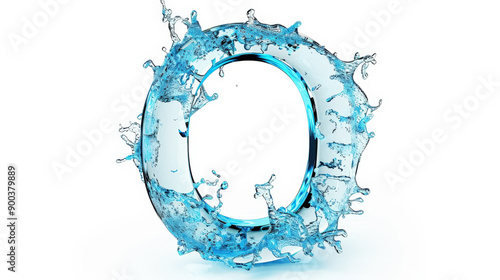 Capital letter O made of blue water splashes or ice on light background. Scrapbook activity. Generative AI