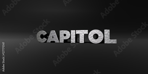 CAPITOL - hammered metal finish text on black studio - 3D rendered royalty free stock photo. This image can be used for an online website banner ad or a print postcard.