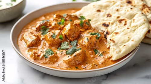 Captivating Butter Chicken Curry Served with Naan on Chic Marble Surface