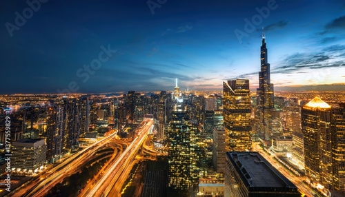 Captivating cityscape at night showcasing modern skyscrapers with golden in vibrant skyline