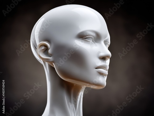 Captivating close-up of a serene mannequin head with glossy finish inspiring thoughts on beauty identity and aesthetics in high fashion captured with clarity