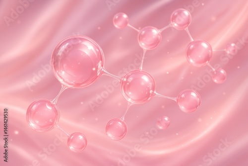 Captivating Close-Up of Glowing Pink Molecules and Bubble Structures Amidst a Soft Pink Background, Showcasing the Beauty of Scientific Progress and Innovation