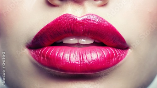 Captivating Close-Up of Pink Lips with a Tilt-Shift Effect on a White Background for Beauty and Cosmetic Themes