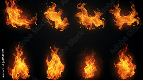 Captivating Collection of Transparent Fire Elements for Fireplace, BBQ, and More – High-Energy Glowing Flames and Sparks for Creative Designs with Copy-Space