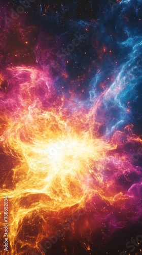 Captivating Cosmic Explosion A Vibrant Interstellar Phenomenon in the Vast Universe This stunning digital artwork showcases the powerful and mesmerizing energy of a cosmic event