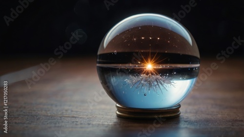 Captivating Crystal Ball with Reflections of Sparkling Jewelry Under warm Ambient Light, Creating a Magical Atmosphere of Elegance