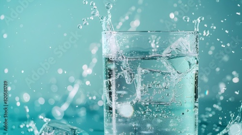 Captivating Crystal Clear Sparkling Water Splash in Turquoise Glassware