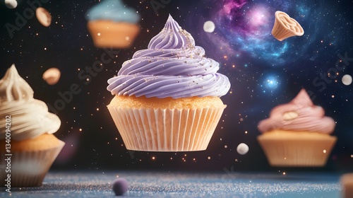 Captivating cupcake with a shimmering star in the background floating in a mystical atmosphere of imagination