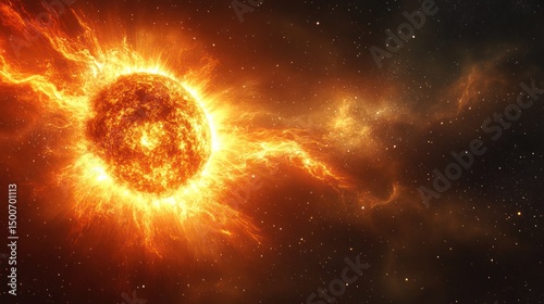Captivating illustration of a star, engulfed in intense flares and radiant energy