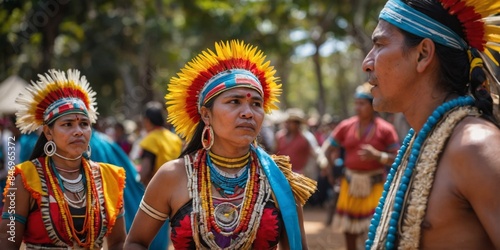 Captivating image featuring indigenous people in colorful traditional ceremonial attire in a cultural celebration