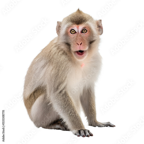 Captivating Monkey Portrait Adorable Macaque with Expressive Eyes Open Mouth Against Black Background Detailed Fur and Engaging Gaze