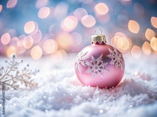 Captivating Pink Christmas Ball Nestled in Soft Snow, Perfect for Holiday Decor and Winter Wonderland Themes, Evoking a Magical Festive Atmosphere