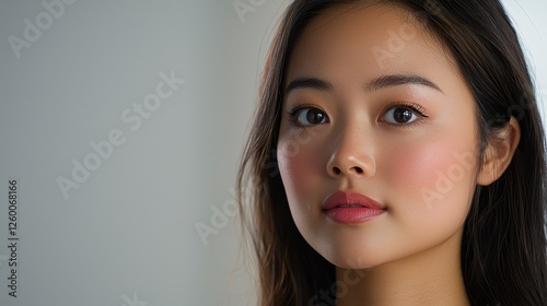 Captivating portrait of a young woman studio photography neutral background close-up beauty and emotion