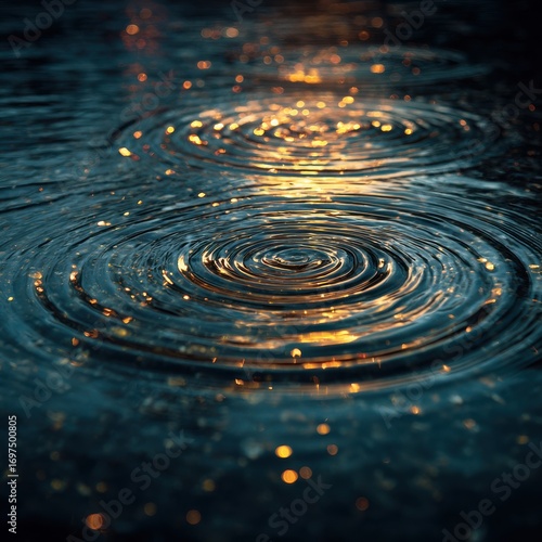 Captivating Ripple Patterns on Water Surface with Glimmering Light Reflections During Rainy Evening or Morning