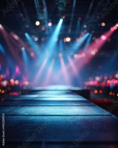 Captivating stage illuminated with vibrant blue and pink lights creating a dynamic and energetic atmosphere perfect for performance art and entertainment venues