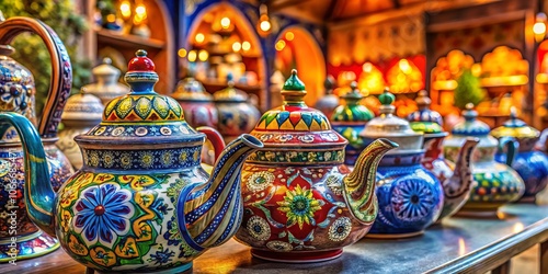 Captivating Uighur Teapots Displayed Amidst the Bustling Atmosphere of Urumqi International Grand Bazaar, Xinjiang, China on July 20, 2022: A Cultural Delight