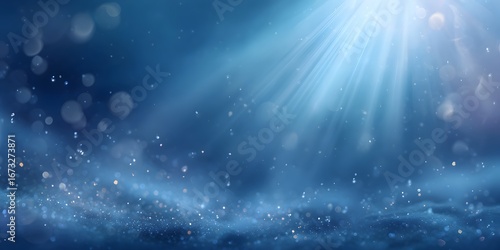 Captivating underwater light beams and shimmering particles. A mystical blue background for abstract, fantasy, and serene themes.