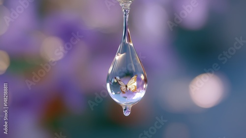 Captivating water droplet holds delicate butterfly reflection in vibrant setting
