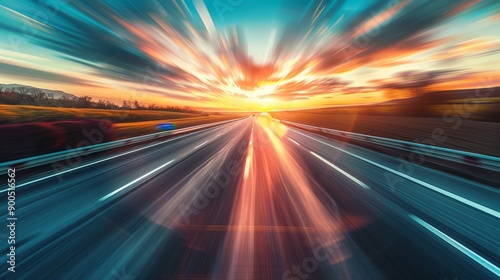 Capture a moving vehicle on the road with a slower shutter speed to create a motion blur effect, adding a sense of dynamism to the tranquil sunset scene. -