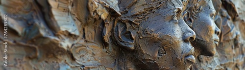 Capture a thought-provoking low-angle image of a sculpture or mural that symbolizes societys struggle for equality Emphasize the grandeur and power of the artwork to convey a strong message on social