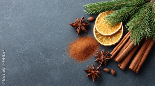 capture minimalistic arrangement of seasonal spices and herbs that evoke essence of autumn elegantly displayed with
