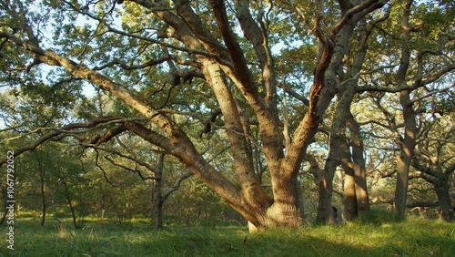 Captures the Forest's Twisted Branches and Waves of Green Grass Bathed in Sunlight, Turning It into a Magical Kingdom of Nature. Ideal for Virtual Forest Walks