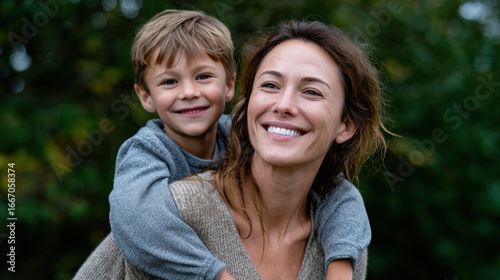 Capturing a bonding moment, a mother shares a joyful moment with her son as they enjoy nature, showcasing the beauty of family life and outdoor exploration together.
