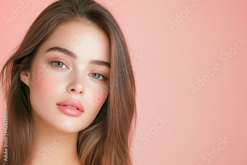 Capturing the essence of beauty with a fresh-faced young model showcasing flawless skin against a pastel backdrop