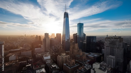 Capturing the soaring skyscrapers under the bright daylight