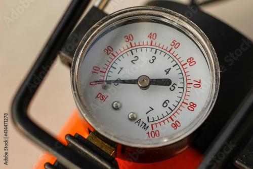 Car compressor pressure gauge scale on a light background.