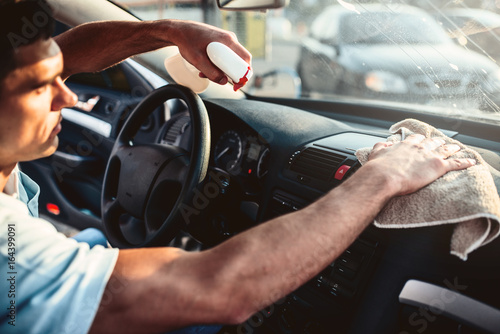 Car dashboard polishing on carwash station