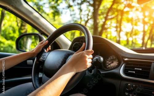 Car drivers keep their hands on the wheel, road trips, highway driving