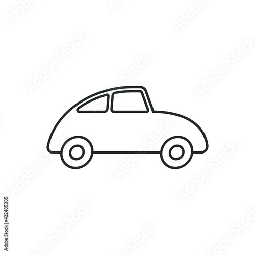 Car icon. Cute cartoon style automobile vector image. Comic transport logo. Funny vintage auto vehicle symbol sign. Black silhouette isolated on white background.