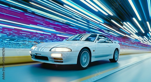 Car Motion Blur in Synthwave Style, Purple and Blue Color Theme, Long Exposure