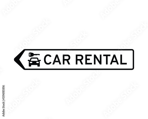 Car Rental Sign with Black Border, White Background, and Iconic Car-and-Key Design – High Quality Vectorial Stock Image