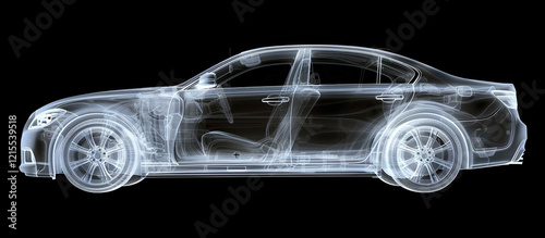 Car vehicle 3d blueprint mesh model on a black background. 3d rendered image