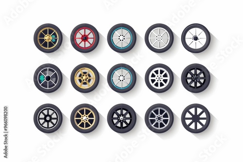 Car wheels flat icon, tire silhouettes, rim symbol, auto wheels sign, car tyre pictograms, minimal
