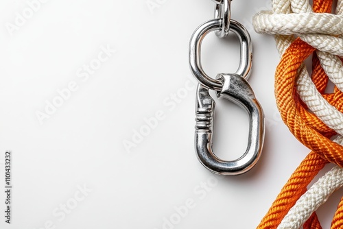 Carabiner and Rope on White Background for Climbing Gear
