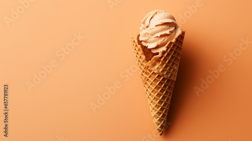 Caramel cone icecream on isolated Tan or Light Brown , copy space