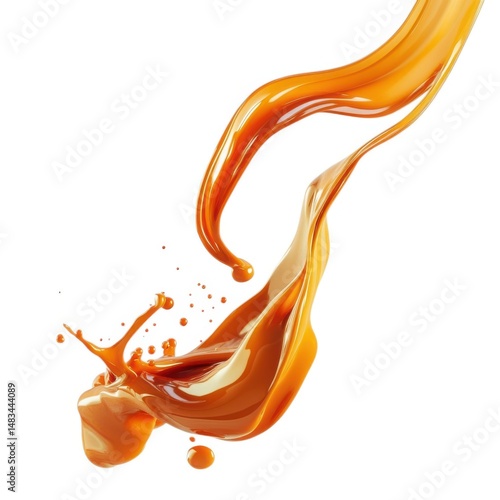 Caramel liquid splash motion shot on white background