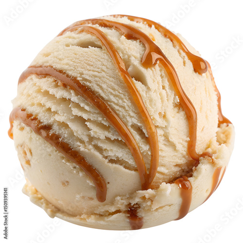 Caramel Swirl Ice Cream Scoop Isolated on Transparent Background