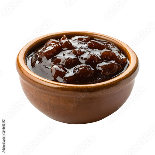 Caramelized Date Sauce in a Bowl of Chocolate Puddings Isolated on Transparent Background