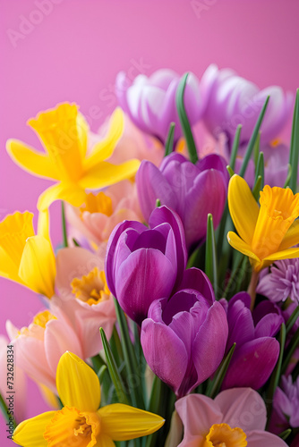card or banner for mother's day or eighth of march on pink background with spring flowers