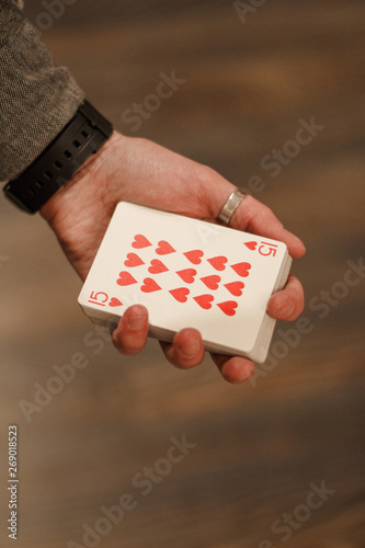 Card trick, a deck of playing cards in a man's hand - the work of a magician